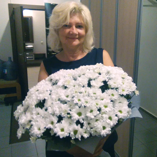 Спасибо огромное за проделанную работу. Все честно,пунктуально и главное красиво сделали. Хризантем шикарные, 25 веток- очень пышно вышло.