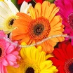 поможет солнечное сочетание пестрых гербер. Нежно розовый цвет намекнет о симпатии,  желтый о дружеском интересе, оранжево-красный станет комплиментом, а насыщенно-розовый