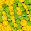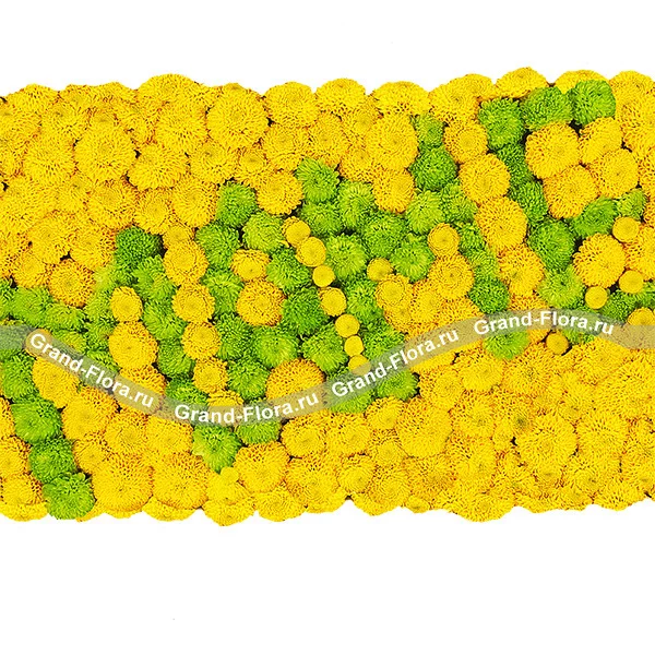 Уменьшенный: хризантема кустовая желтая (сантини) - 12 шт., хризантема кустовая зеленая - 6 шт., оазис.