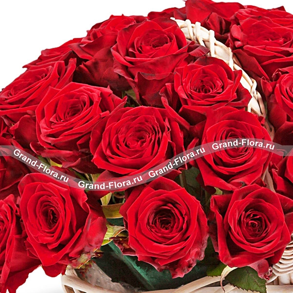 Роза красная - 51 шт., оазис, корзина.